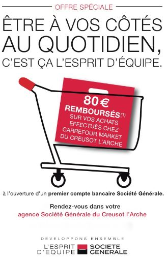 Selon Creusot Infos, le Centre Commercial Carrefour Market – situé 3, avenue François Mitterand au Creusot – s’associe de manière étonnante avec la Société Générale de l’Arche !
