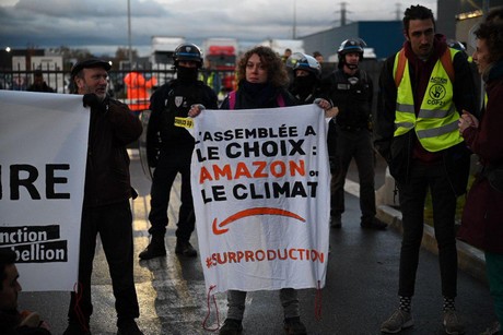 « Depuis hier, le géant de la vente en ligne Amazon est bloqué à Paris, Lille et Lyon par des militants des Amis de la Terre et d’Action Non-Violente COP21. En plein Black Friday, ces actions s’ancrent dans une vaste mobilisation de la société civile contre le système de surproduction, tout aussi climaticide qu’injuste socialement. Elles visent également à interpeller les élus, en pleine discussion en Commission sur la loi économie circulaire, pour qu’ils relèvent l’ambition climatique et sociale de la France, jusqu’à présent passée à la moulinette dans le texte.