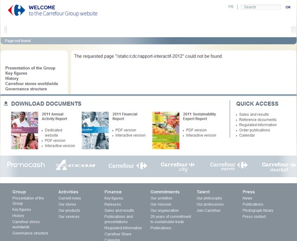 carrefour.comOn voit régulièrement des éléments remis à jour sur le net, depuis les lettres d’information jusqu’aux sites. Voilà qu’une beauté vient d’être faite au site institutionnel de Carrefour Groupe. Nettoyage, remise en ordre, facilité de recherche de l’information. Selon statmyweb, il obtient un total de 23.943 visiteurs uniques par jour, qui produisent un total de 50.280 pages vues.