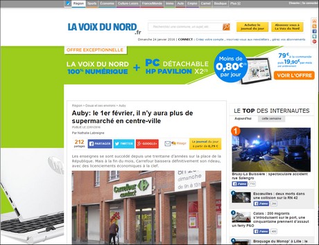 Un article de La Voix du Nord, vient de nous apprendre qu’un magasin Carrefour Contact vient de fermer dans la ville d’Auby, en région Nord-Pas-de-Calais-Picardie, près d’Hénin-Beaumont.