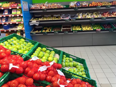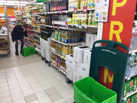 On note une réduction de l’assortiment, les demi-palettes de cette enseigne qui vise le soft discount. Moins de références à gérer… et donc moins de coûts de gestion.
