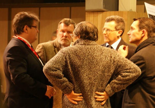 De g. à d. : Jean-Luc Léchère – Directeur des relations avec le monde agricole et des partenariats avec les PME, Serge Papin – Président de la coopérative Système U qui n’avait d’ailleurs pas souhaité – on s’en souvient – diriger le groupe Carrefour – saluant Gabriel Binetti – 5e directeur de Carrefour Sainte-Geneviève et « papa » des filières chez Carrefour.