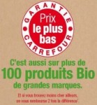 En 2011, plus de 40 % des français ont consommé des produits bio au moins une fois par mois (Source Agence Bio). Avec cette nouvelle garantie, Carrefour répond aux attentes des consommateurs de bio et leur offre les prix les plus bas sur 100 produits bio dans tous ses hypermarchés.