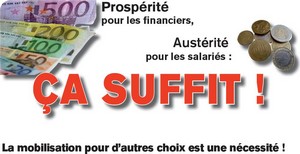Prospérite austérité ça suffitCe week-end, le compte Facebook syndical UD CGT 84 (Union départementale des syndicats du Vaucluse), relayé par celui de la CGT Carrefour, vient de diffuser un appel à la grève le 11 octobre 2011 : « Contre les bas salaires et les plans d’austérité la CGT CARREFOUR appel tous les salariés à se mettre en grève le mardi 11 octobre et à participer à ses cotés à toutes les initiatives qui seront organisées. AGISSONS ENSEMBLE POUR NOS SALAIRES ! »