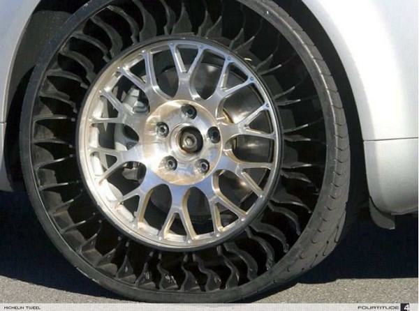 Pour cette fois nous présentons des pneus sans air et prévus pour être mis sur le marché prochainement. Plus de valve à air, plus de compresseur aux stations d’essence, plus de kit de réparation, plus de crevaison… Pensez simplement à l’impact sur la clientèle. Oui évidemment cela remet en cause le rayon auto ! Et alors… Carrefour vendait des téléphones à cadrant dans le temps, et maintenant ? Ces clichés ont été pris à l’usine Michelin en Caroline du Sud, USA. Des pneus où l’on peut voir au travers, dessinés par Michelin à Philadelphie. Combien d’exemples de ce type faut-il pour que la direction marketing de l’enseigne comprenne que des promos à n’en plus finir ne fera pas venir plus de clients… Faites économiser par l’innovation, c’est la clé !