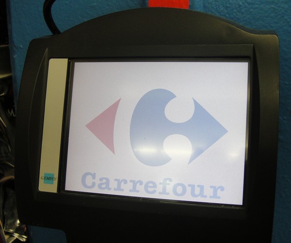 Faux logo Carrefour vu sur une borne dans le magasin Carrefour Planet d’Athils-Mons. Pour les non-initiés, il suffit de regarder la partie rouge…