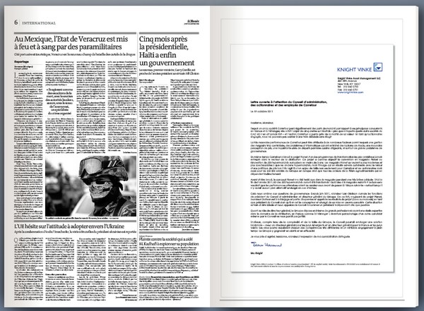 Cette semaine, une passe d’arme vient de s’opérer entre le fonds américain Knight Vinke Asset Management et le syndicat Force Ouvrière. Afin que chacun puisse se faire sa propre opinion, nous reprenons en premier le courrier de Eric Knight, présenté dans la presse. Pour être plus précis, c’est dans Le Monde que l’actionnaire minoritaire – qui n’en est pas à son premier courrier – décide évidemment de s’offrir une pleine page de publicité avoisinant les 130 000 euros selon le tarif catalogue du journal, même si les réductions peuvent être conséquentes selon une source proche du fonds américain.