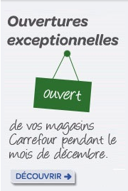 Les horaires d’ouvertures exceptionnelles, pour les dimanches en préparation des fêtes de Noël, viennent d’être publiés pour les magasins hypermarchés de la métropole. Sur cette page vous retrouverez la liste des Carrefour ouverts, des hypermarchés si vous préférez, plus bas vous retrouverez également la liste des Carrefour Market, les supermarchés de l’enseigne.