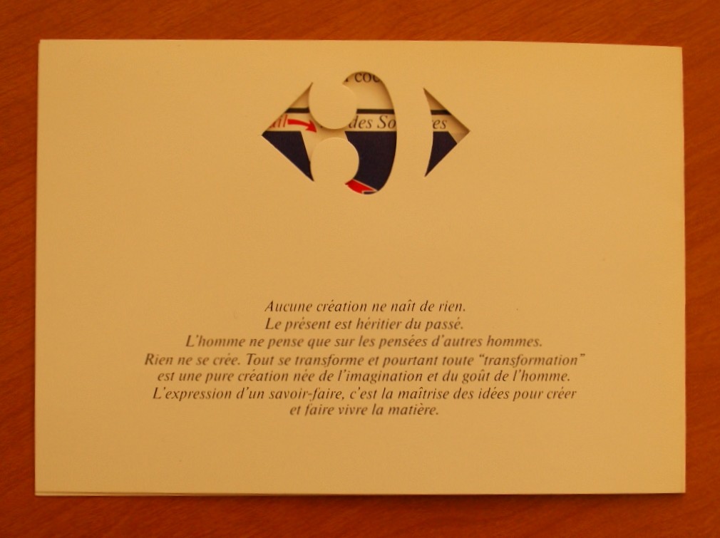 Au dos du carton d’invitation pour l’inauguration, le texte