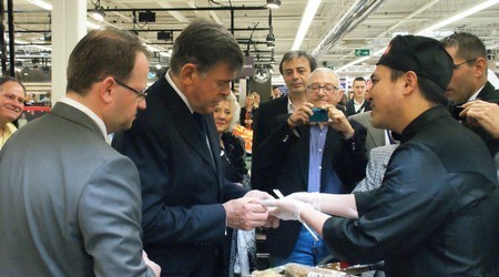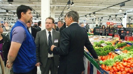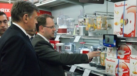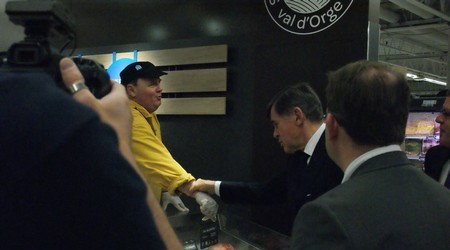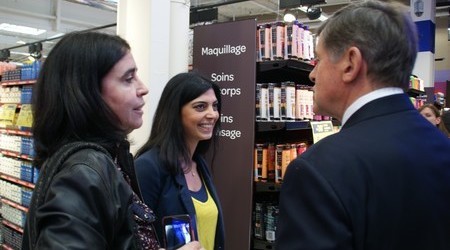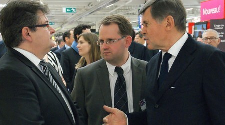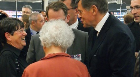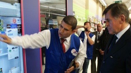 Georges Plassat – PDG – et Jérôme Bédier – secrétaire général – en arrière planJérôme Peyrou de dos – dir. du magasin – Georges Plassat et Jérôme BédierJérôme Peyrou, Georges Plassat et Gabriel Binetti visitent l’expositionVitrine de produits libres facticesEric Bourgeois – directeur des hypermarchés – et Jacques Creysel – FCDJean Richard de La Tour et Frédéric Ebling – directeurs des affaires publiquesPendant les discoursGeorges Plassat et Olivier Léonhard – maire de Ste Geneviève des BoisLe cortège vers le magasinLa musique en têteL’inauguration proprement diteLa découpe du rubanTout un symboleGabriel Binetti – 5e directeur de Ste Geneviève – avec des clientes historiquesWalid – vendeur – présente à Georges Plassat le mur digitalGeorges Plassat continue la visite accompagné du directeur du magasinThierry – vendeur EPCS – au sein du rayon électroménagerExplication devant le rayon du petit électroménagerBaya Haber – identité visuelle hyper – et Frédéric Despres – dir. rég. PropertyUne nouveauté technologiqueThierry Legault – Filière Qualité – et Eric BourgeoisDeux hôtesses de caisse dans la tenue 1976 rééditée pour l’occasionDiane Labruyère-Cuilleret – administratice – avec Jean-Pierre LabruyèreDe dos : Gérard Dorey – Directeur exécutif de Carrefour ProximitéUn animateur salué au rayon poissonPoissonGeorges Plassat à l’écoute de Pierrick – manager poissonPierryck à l’écoute de conseilsYves – manager fruits et légumesA gauche : Marie-Thérèse – présidente de l’association EscaleMichel – manager boucherieVirginie – manager charcuterie-traiteurArrêt à l’espace sushiPas trop épicé pour moi… et donnez-en à tous ceux qui me suivent !A boire comme du petit-lait !