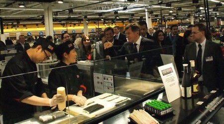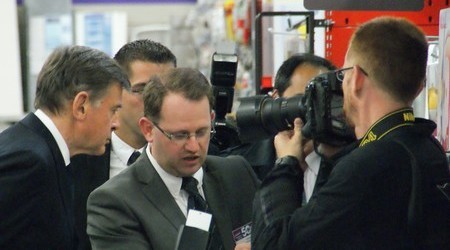 Place maintenant à la visite de l’exposition retraçant les grands moment de l’enseigne réalisée pour l’occasion, suivi de la cérémonie de découpe du ruban avant la traditionnelle visite de magasin, présentant notamment le parcours innovation. [Par convention, les noms sont indiqués en fonction des positions des personnes et de gauche à droite sauf indication contraire.]