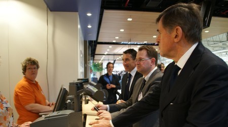 Laurent Bataille – directeur technique et support paysNoël PriouxNoël Prioux, Jérôme Peyrou et Georges PlassatDeux personnes ayant réalisé la signalétique du magasinDe retour vers entrée, les bornes multimédiaPassage en caisseGeorges Plassat, Jérôme Peyrou, Eric Bourgeois face à l’équipe accueilLes 50 ans Carrefour