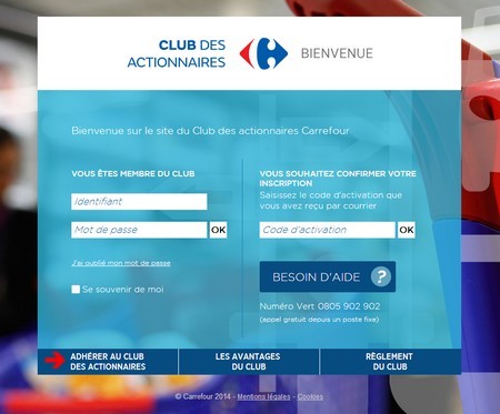 Dans un premier temps, il faut trouver l’adresse du site internet conçu à l’occasion par la société Seitosei : https://www.clubactionnaires.carrefour.com/fr/ pour les personnes de langue française.