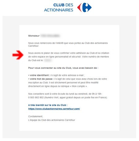 L’adhésion au Club des actionnaires Carrefour se matérialise par l’attribution d’un numéro de membre.