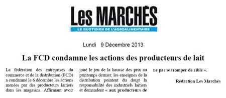 Selon un communiqué daté du 6 décembre 2013, diffusé par la FCD : « Un conflit oppose depuis quelques mois les producteurs de lait à certains industriels du secteur qu’ils accusent de ne pas respecter leurs engagements sur le prix du lait.