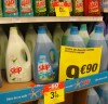 Pour ceux qui sont les plus attentifs aux affiches en magasin, voici une originalité : un produit véritablement nouveau avec emballage familiale… rien de tout cela finalement. Juste une erreur d’affichage qui ferait croire que la lessive se prend pour de la crème de douche…