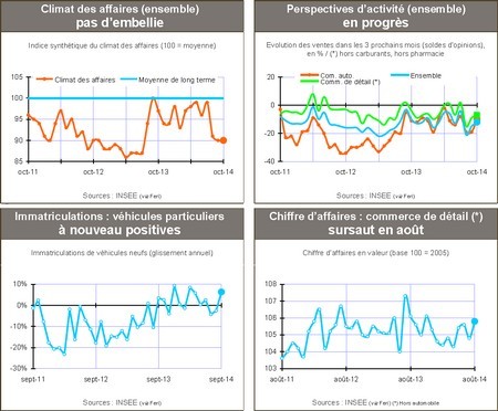 Selon une information Xerfi : « Hausse du chômage, pression sur les revenus, l’environnement économique et financier ne pousse pas les Français à la dépense et le climat des affaires reste très terne. Le recul du prix du pétrole redonne des marges de manœuvre, mais le risque est que les sommes économisées s’orientent plus vers l’épargne. Sur les 8 premiers mois de 2014, le chiffre d’affaires du commerce (hors automobile) a baissé de 0,5% (par rapport à la même période de 2013), hypothéquant déjà le résultat à attendre pour cette année. »