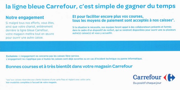 Cela aurait été rigolo : « choisis ta ligne… et gagne du temps d’attente en magasin… plus tu attends et plus tu cumules de points sur ta carte de fidélité pour temps dépassé ».