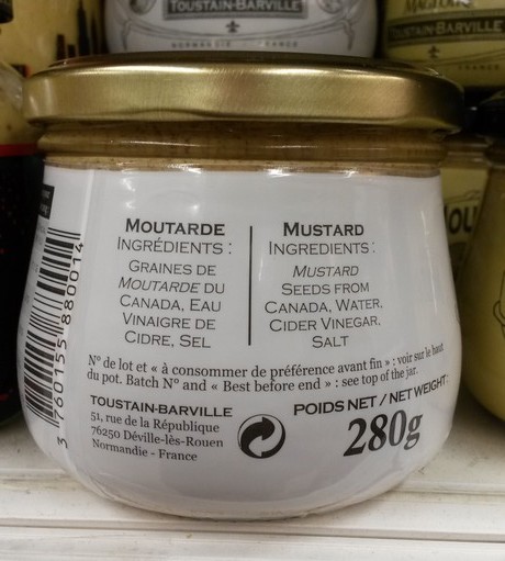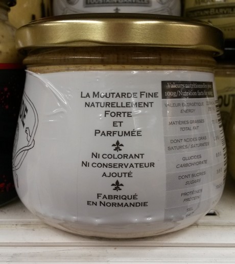 Étrange, c’est toujours étrange lorsque l’on apprécie les produits de France de voir comment les étiquettes peuvent nous surprendre en indiquant moutarde de Normandie.