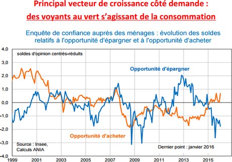 • Certains signaux seront cependant favorables à l’activité en 2016. La production alimentaire a renoué avec la croissance en 2015 (+0,8% sur un an en novembre), après trois années de baisses successives. D’autre part, la baisse du prix du pétrole, qui stimule le pouvoir d’achat des ménages, a permis une reprise de la consommation en 2015, qui reste toutefois plus faible dans l’alimentaire que dans d’autres secteurs. Ceci tend à prouver que la faiblesse persistante de l’inflation alimentaire ne stimule pas la consommation.