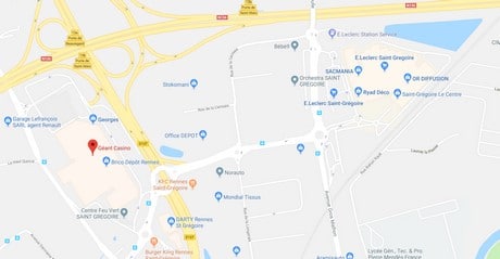 En raison de la forte proximité géographique entre l’hypermarché racheté [voir illustration], qui passera sous enseigne E. Leclerc, et un hypermarché déjà exploité sous enseigne E. Leclerc par le même adhérent, tous les deux situés à Saint-Grégoire (35), en périphérie de Rennes, l’Autorité a mené, en complément de son analyse locale traditionnelle des effets d’une concentration dans le secteur du commerce de détail, un examen spécifique par l’intermédiaire d’un test de marché (consultation) réalisé auprès des magasins (supermarchés, hypermarchés) implantés dans et à proximité de Rennes (35). »
