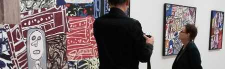 Hélène Leclerc face à une oeuvre de Jean Dubuffet (Fonds Hélène et Edouard Leclerc pour la culture – Landerneau)