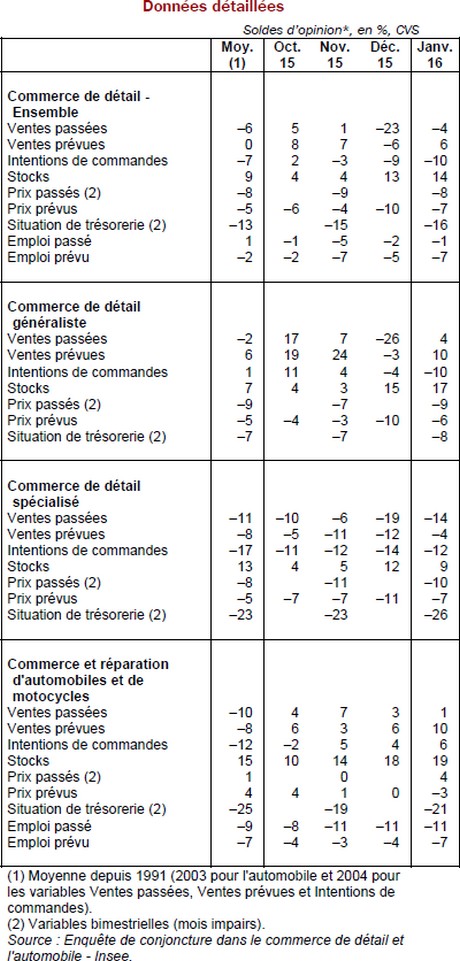 Les chefs d’entreprise du commerce de détail et du commerce automobile sont plus nombreux qu’en décembre à déclarer une hausse de leur activité passée. Le solde correspondant se redresse après le « trou d’air » de décembre 2015.