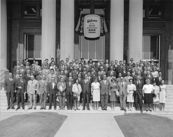 Voici la photo du séminaire des Modern Merchandising Methods (MMM) mené sous la direction de Bernardo Trujillo entre le 7 et le 11 juin 1965. Sur la photo, des têtes illustres pour le commerce français… et pas seulement du commerce d’ailleurs. On note par exemple la présence de Charles Pasqua, plus connu à l’époque pour ses fonctions au sein de la société Ricard S.A. On retrouve également Etienne Thil, journaliste a cette date, jusque avant qu’il ne devienne le premier directeur de la communication de la société Carrefour ainsi que Marcel Fournier, l’un des trois dirigeant de la-dite société Carrefour (créée en 1959).