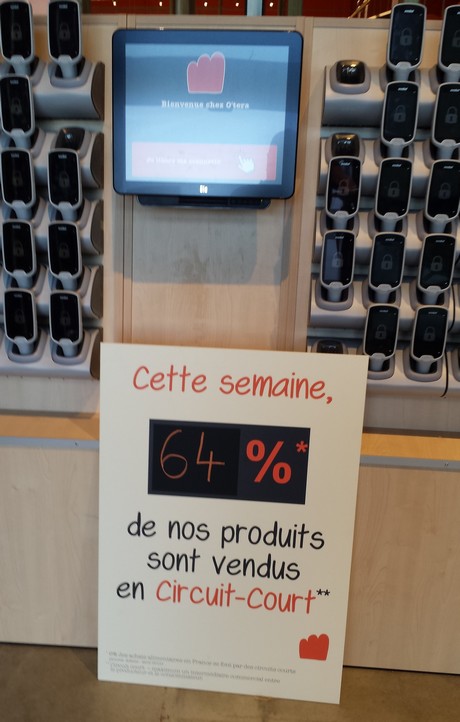 O’Tera c’est la promesse du circuit court. Les documents distribués sur place précisent : « Démocratisons les bienfaits des circuits courts ». Le but est d’ainsi proposer des produits avec un seul intermédiaire entre le producteur et le consommateur. C’est la remise à l’ordre du jour des principes de la distribution chers à Edouard Leclerc, de la part d’un fondateur issu de la famille Mulliez. On aura oublié les prix bas au passage ;-)