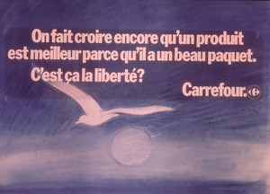 « La politique poursuivie par Carrefour en créant sa marque de distributeur a de très nombreux points communs avec le consumérisme. Pour le consumérisme, le fabricant n’est pas le seul responsable des produits, le distributeur l’est également. Le consumérisme souhaite que le distributeur soit l’allié du consommateur et non celui du fabricant. Il veut que le magasin se considère comme un acheteur pour le consommateur et non un vendeur pour le fabricant.