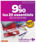 Sur le site http://www.carrefour.fr/LD_actualites/rentreedesclasses2011 on espérait bien un catalogue sur « Les 25 essentiels de la rentrée ! » (illustration ci-contre). Du 17 au 23 août 2011, celui-ci propose la liste de fournitures préconisées par l’enseigne en 4 pages et 31 pages d’alimentaire sur les 48 du catalogue.