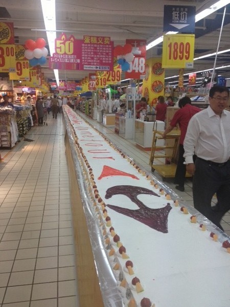 50 ans Carrefour : 50 mètres de gâteau dans le magasin Carrefour Beizhan