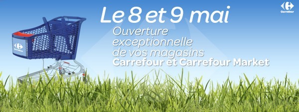 Vous recherchez l’ouvertures des magasins Carrefour pour les 8 et 9 mai 2013… la voici. Pour le magasin de Brebières… peut-être le saura-t-on – sans se déplacer – avant la fin de la semaine ;-) Liste des hypermarchés Carrefour ouverts le 8 mai Magasins Heures AIRE SUR LA LYS 09:00 – 19:00 AIX EN PROVENCE 09:00 … Lire la suite