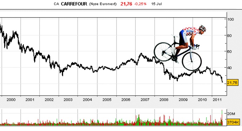Il est toujours étonnant de voir à quel point la chute du titre Carrefour est importante sur plusieurs années. Nous mettons, en guise de référence, un graphique pour signaler que les plus bas actuels nous ramènent à… 1995, toutes choses égales par ailleurs… Il est vrai que la sortie de Dia et l’inflation doivent modérer cette … Lire la suite