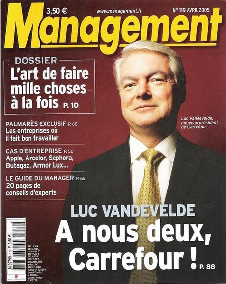 « J’ai fait mon temps comme CEO », confie Luc Vandevelde. Dans un article dernièrement publié, il confirme avoir envisagé d’acheter Carrefour… Une information qui fera plaisir à ces anciens détracteurs. CV de Luc Vandevelde > 1951 Naissance à Halen (Belgique) > 1970 Il devient comptable dans la filiale belge de Kraft, qu’il fera fusionner avec Jacobs Suchard … Lire la suite