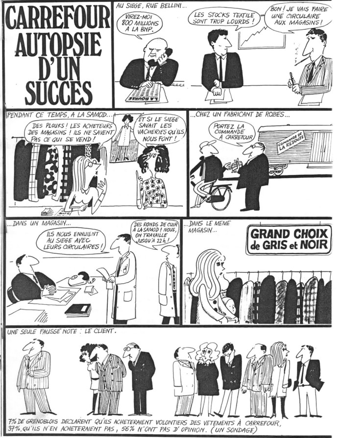 Au début janvier 1970, déjà, un dessin illustrait les rapports entre la direction générale et les magasins, la gestion des approvisionnements, le choix des assortiments… la décentralisation totale était pourtant de mise à l’époque. Tout change puisque rien ne change… Dans le premier dessin de gauche à droite : Marcel Fournier, Denis Defforey et Jacques Defforey … Lire la suite