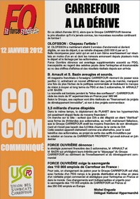 Nous reprenons ici le texte du syndicat en date du 12 janvier 2012 : « En ce début d’année 2012, alors que le Groupe CARREFOUR traverse la pire situation qu’il n’a jamais connue, les mauvaises nouvelles continuent de tomber ! OLOFSSON : Chapeau l’artiste ! M. OLOFSSON a maintenant atteint 3 années d’ancienneté et devient éligible, en … Lire la suite