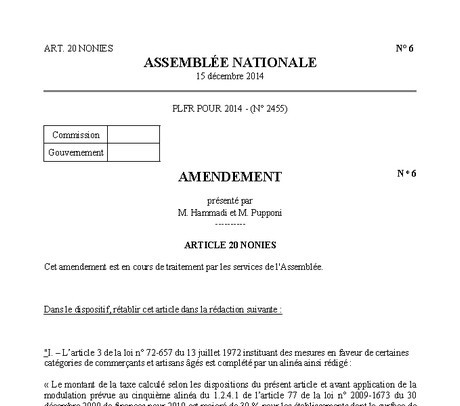 Le parlementaire Razzy Hammadi vient de déposer un amendement à l’Assemblée Nationale concernant la taxe additionnelle à la TASCOM dans le cadre du PLFR2014. L’article 20 nonies supprimé au Sénat est ainsi, à travers cet amendement, réintroduit avec une nouvelle écriture faisant passer la majoration de la TASCOM de 50% à 30% et réduisant le seuil d’entrée … Lire la suite