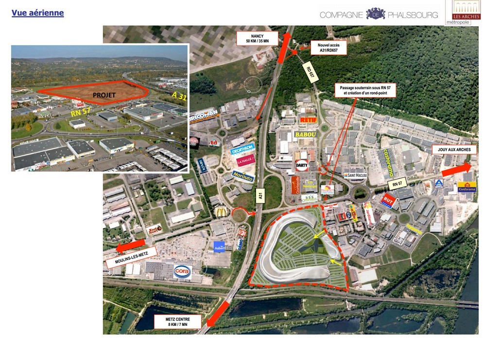 Développé en partenariat entre La Compagnie de Phalsbourg et Les Arches Métropole, ce parc commercial nouvelle génération s’insère au sein d’Actisud, la première zone commerciale de Lorraine.