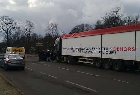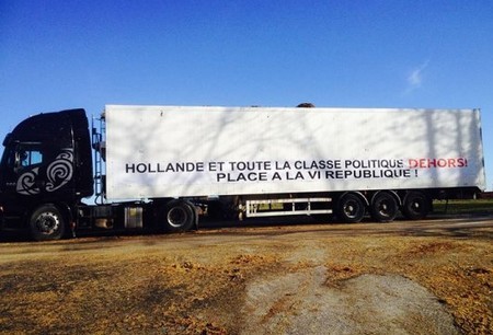 On savait Xavier Kemlin tenace… Avec Thierry Borne voici deux hommes tenaces – mais responsables – pour dénoncer les agissements de François Hollande et les excès de la République. Les deux hommes débutent, ce matin, leur deuxième journée ensemble pour un parcours qui les amènent sur le périphérique parisien avec un camion de 44 tonnes toujours affublé d’une bâche : « Hollande et toute la classe politique dehors – Place à la VIe République ».
