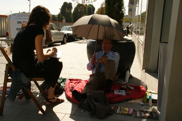 – Metro (24 sept.) « Grève de la faim devant un supermarché Carrefour à Boulogne-Billancourt ». Pour le lieu, c’est bien devant le siège du groupe. On remercie l’auteur de ce billet : ‘mototaxi’.